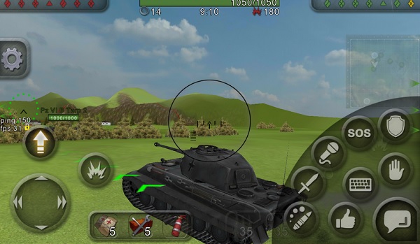 Удобное и несложное, оно подточено под сенсорные дисплеи. Пользователь может расположить кнопки как ему угодно. Среди прочих, вы найдёте кнопку включения режима постоянной езды, что позволяет полностью сосредоточиться на борьбе с противником, стоять на месте обычно не рекомендуется. Также можно переключать управление между разной техникой.