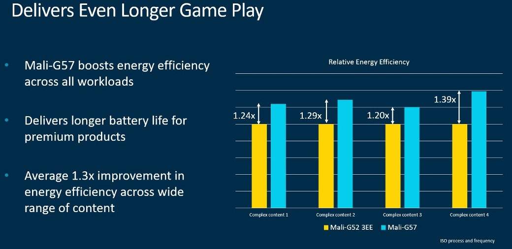 Что говорят цифры? Если верить производителю, то по сравнению с Mali-G52, видеочип Mali-G57 стал производительнее на целых 30%. Причем прирост производительности заметен не только в играх, но и в 2D-контенте высокого разрешения. А еще заявляется о снижении энергопотребления на 30%, что также несомненно радует.