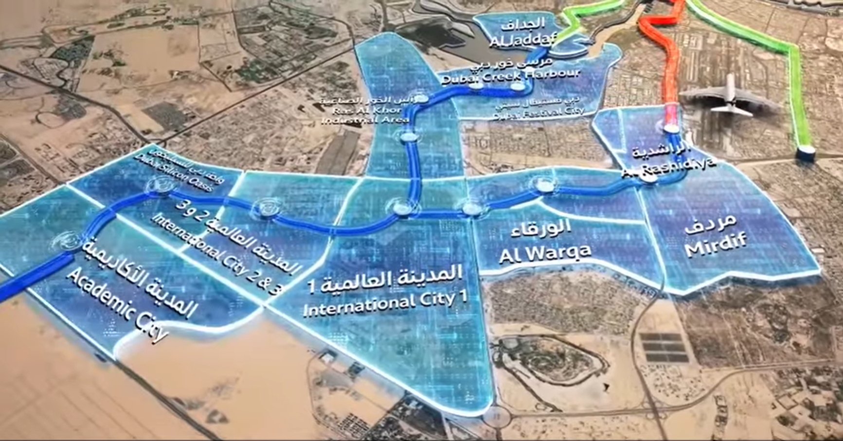 3. Далее ветка направится в район Al Warqa, примерная локация станции - https://maps.app.goo.gl/XtN4KeAMxmN383EP6