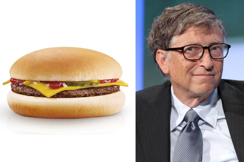 Билл любит диетическую колу настолько сильно, что выпивает три или четыре в день. Пищевые привычки Гейтса не намного лучше. Он говорит, что съедает какао-подушечки на завтрак, но его жена Мелинда говорит, что он вообще пропускает приемы пищи. Он очень любит чизбургеры и ест их практически каждый день (однако в последние годы старается делать это не так часто). Очевидно, жена ограничивает ему доступ к фаст-фуду. Именно поэтому, где бы и с кем он не обедал, обязательно должны быть чизбургеры.