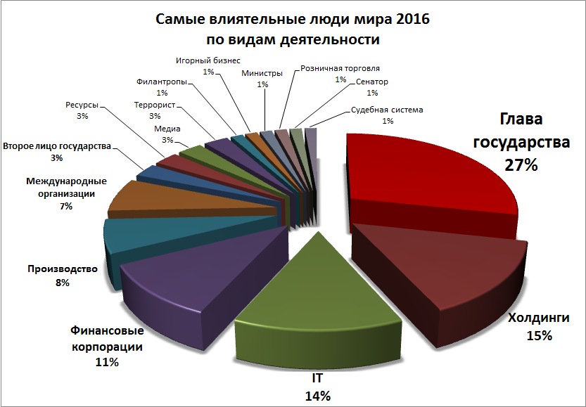 Рассмотрим распределение самых влиятельных лиц мира по роду деятельности.