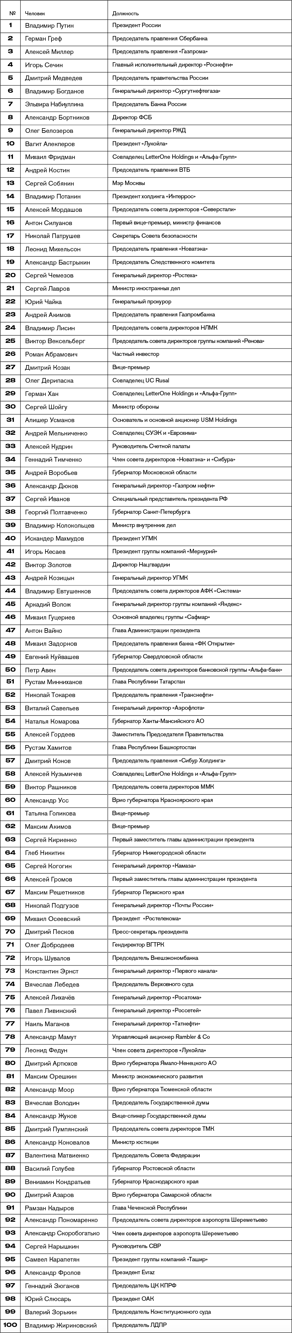 Список Forbes 2018 – топ-100 самых влиятельных людей России – полный список
