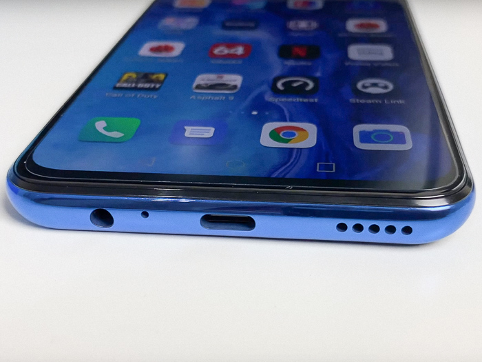 Honor 9X – смартфон-крепыш. Это настоящий фаблет, диагональ которого приближается к значениям небольших планшетов. Диагональ Honor 9X – 6.59 дюйма, тип матрица – IPS, соотношение сторон – 19.5:9, занимаемая площадь – 91%, разрешение – FullHD+. Дисплей производит очень хорошее впечатление: яркий, контрастный, с хорошим балансом белого. В качестве защитного стекла используется материал неизвестного китайского производителя. К качеству экрана особых претензий нет, он имеет хороший диапазон яркости. Однако у такого дисплея есть один недостаток – размер. С Honor 9X очень сложно управиться, используя одну руку – уж слишком смартфон гигантский.