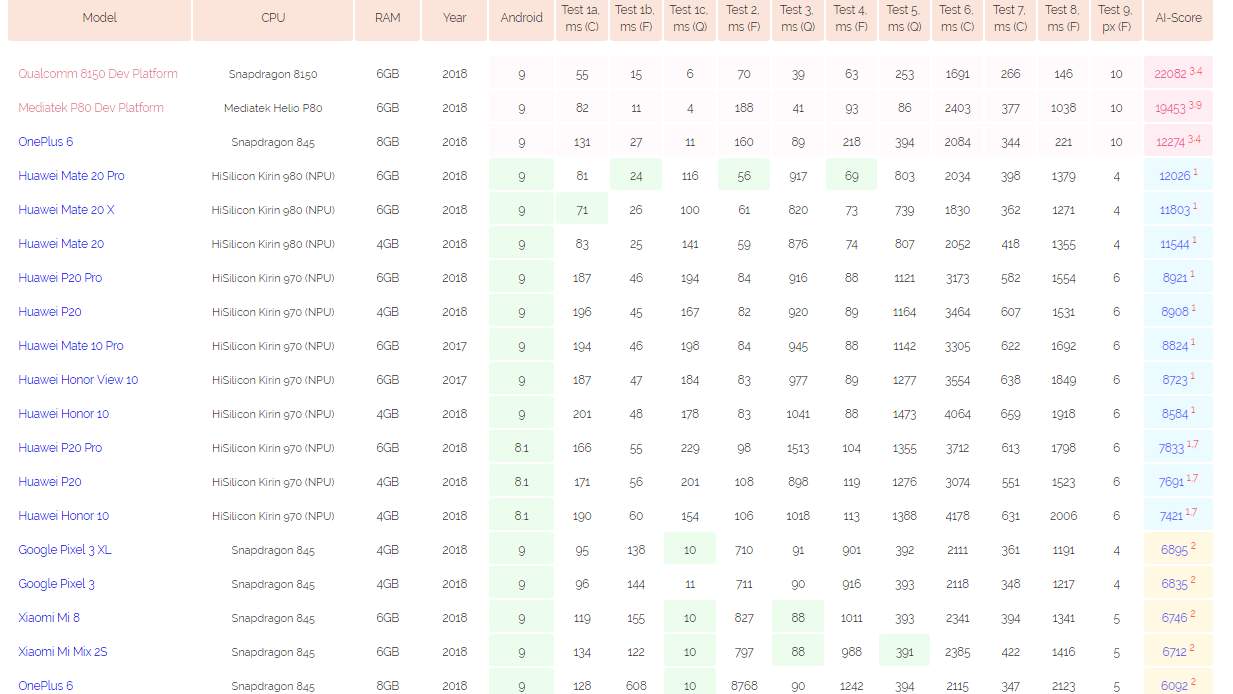 Не секрет, что в последнее время на первый план выходит больше не мощность процессорных ядер или графики, а производительность нейроблока (ИИ). На искусственный интеллект и машинное обучение возлагается немало функций, в частности ИИ помогает улучшить фото, улучшает энергоэффективность и даже повышает мощность процессоров. На сегодняшний день полноценными процессорами с ИИ являются Huawei HiSilicon Kirin 980 и Apple A12 Bionic. Однако совсем скоро компания Qualcomm представит мощнейшую однокристальную систему Snapdragon 8150, которая займет почетное первое место по производительности всех систем: процессора, видеоядра и нейроблока. Это подтверждает и опубликованный недавно список, в котором приведены цифры мощности нейроблоков различных SoC. Что самое удивительное, в списке на втором месте расположился чипсет Helio P80 с результатом, очень близким к Snapdragon 8150. Только потом идет Snapdragon 845, который, кстати, обеспечивает мощность нейронных вычислений на уровне Kirin 980. Вот так Qualcomm без лишней шумихи в очередной раз доказала, что топовые чипсеты от Huawei не такие уж и продвинутые, как об этом заявляет китайских гигант.