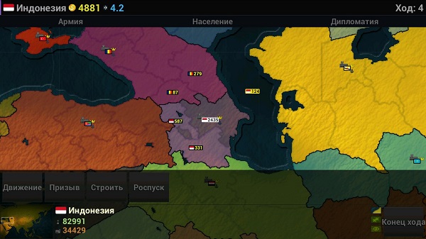 На каждый ход у вас есть определённое количество баллов, которые вы тратите, отдавая приказы и определяя действия во время хода. Цивилизации ходят по очереди и каждый раз в случайном порядке. После завершения хода, вы можете увидеть место вашего государства в статистике, а также доклад с текущими изменениями. В игре Эпоха Цивилизаций Азия у вас будут возможности: