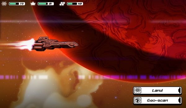 - Посещая планеты, вы можете отправлять робота для разведки и добычи ресурсов или приземляться самому. Есть вероятность пополнить свои запасы или открыть новые технологии, познакомиться с инопланетянами или обнаружить брошенный звездолёт.